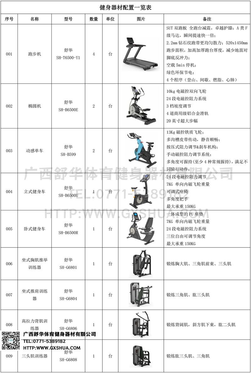 1.kaiyun开云电竞X5跑步机SH-T6500*2台-新X5拥有740mm的宽敞跑台,520mm宽跑带,跑步时更畅快无拘束。搭载SUT全跑台减震系统,针对跑步冲击区进行前、中、后以及双侧全方面避震,有效分散跑步时对跑者膝盖和踝关节的冲击,跑步也能更护膝。