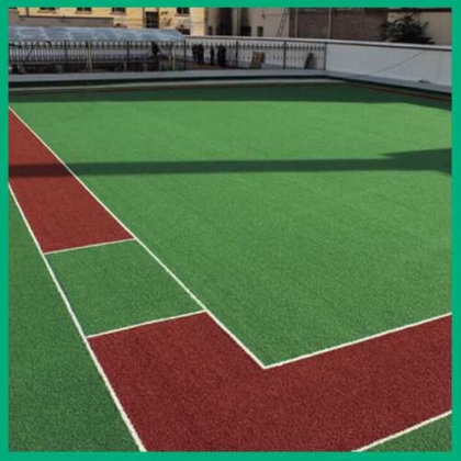成本低、质量好、美观大方;安装方便、无环境污染问题;在水泥和沥青地基上都可以使用;不生苔藓,不腐烂,日晒雨淋不褪色;排水性能好,边界线在工厂预先整体植入草坪。不会磨损,节省划线费用。